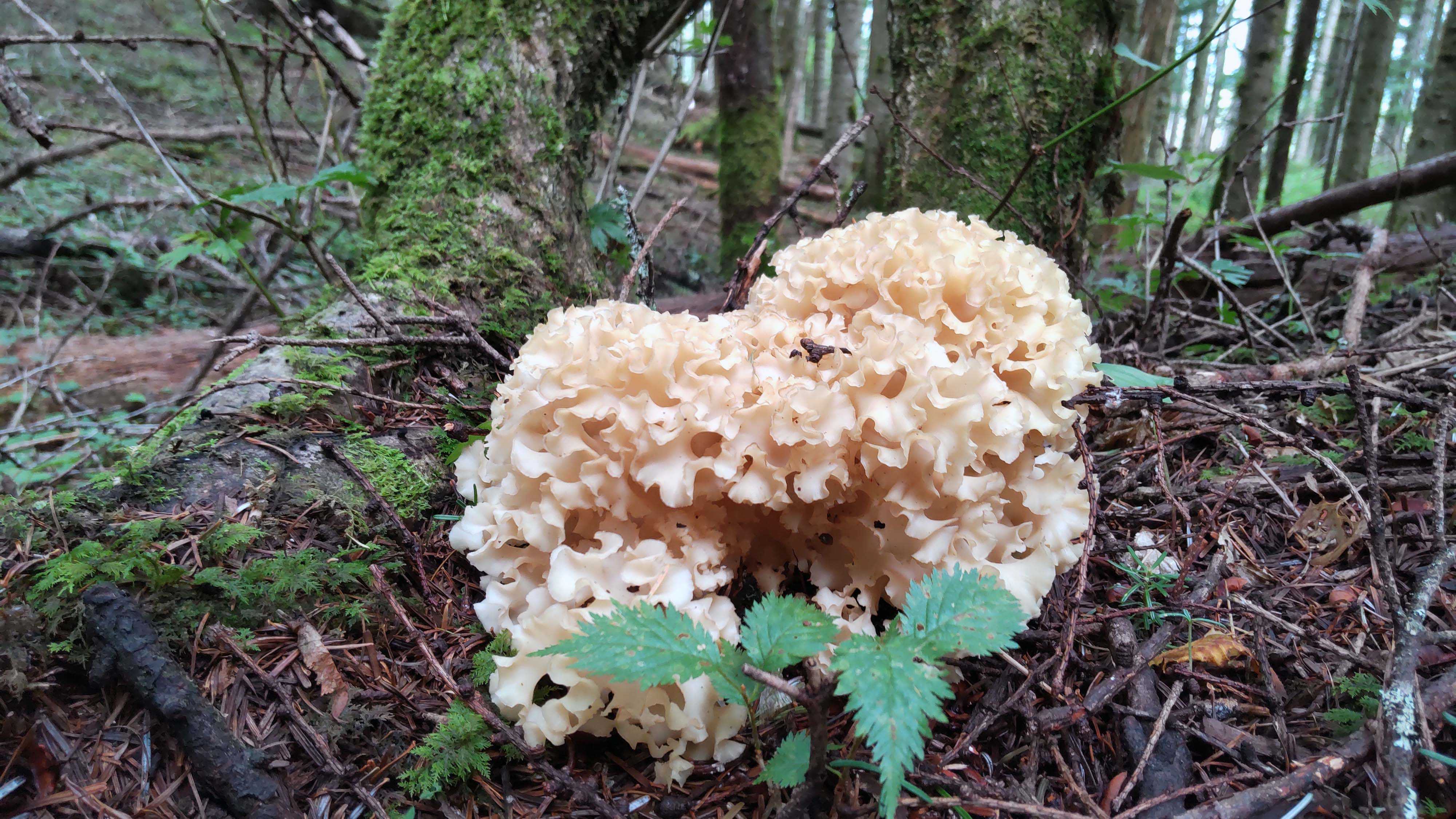 この日も蒸し暑さに負けて「もう帰ろう」とフラフラ歩いていたら、このハナビラタケ発見。