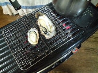 どこで採って来るのかは知りませんが、おやじ会のメンバーさんから、またまた牡蠣のお土産をいただきました。潮干狩りならぬ、牡蠣狩りに行かれたとか。そんなに自然に牡蠣が繁殖してるのかなぁ‥と聞くと、「ヒミツ。全部、自然ものだよぉ」ですと。その量も、バケツ一杯分。食いきれないよぉなどと言いながら、家族全員で、一晩で食べちゃいました。やっぱり、出所が不明なため、ナマは怖いので、焼いていただきました。こんな時に、石油ストーブは便利ですね。じっくりと焼いて、焼酎でいただきました。焼くとね、身が小さくなっちゃってね、ナマの時には、殻一杯だったのですけど‥でも、本当に、採れたてで、身がプリプリで、美味でした。砂出ししなくても、大丈夫なのですね。どうやって採ってるのぉ?としつこく聞くと「腰まで海水につかりながら、竿で突っついて岩からはがしてザルですくって採ってくる」というのが、メンバーさんの説明。腰までの長靴がないとダメですね。↓こういう胴付き長靴、あると便利だとは思うのですが‥阪神素地 総ゴム胴付き長靴 CF-400 【ウェーダー/フィッシング】【PNT5】