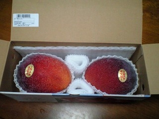 親孝行の弟が、この連休中に両親を沖縄旅行に連れて行ってます。おいら、まだ、沖縄行ったことがないです。気持ちいいだろうなぁ。そして、おいらの家に、沖縄旅行中の両親がマンゴーを送ってくれました。でっかいマンゴーが2個届きました。沖縄のアップルマンゴーです。確かに、外見は、でっかいリンゴのようです。切り方は、インターネットで調べました。大きな種が真ん中にあるので、種の部分と、左右2枚に切るようです。魚でいうところの、3枚におろす、って感じでしょうね。これは、ワンカットめです。大きい方は、もう一回切ります。そして、カットした部分、皮を残したまま実のほうから1センチの賽の目に切り込みを入れるようです。切込みを入れて、裏側の皮をぐっと押すと‥はい、こんなふうに、賽の目に切れたマンゴーが取りやすく分かれます。元の部分からフォークで切り分けていただきます。やっぱり、本場のマンゴーは違う、というのが(当たり前ですけど)、子どもたちの感想でした。届いてビックリ!食べてビックリ!WのビックリBIG マンゴー大きすぎて訳あり!?沖縄県産 巨大 マンゴー 2玉【3,999円】さらに送料無料♪嬉しい特典付【55%OFF】【2セットで1玉プレゼント】【3セットで2玉プレゼント】【smtb-MS】