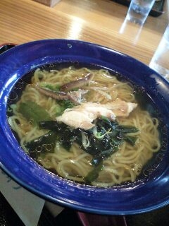 先日、高知に帰省していた時に食べたラーメンです。「道の駅とおわ」で食べた「土佐ジロー和風ラーメン」800円です。お値段高め。見た目、薄味スープが涼しげでいいですね。具は、わかめ、チャーシューの代わりの地鶏(土佐ジロー)、そして、しいたけの煮付け、と和風ですね。一口スープを飲んでびっくり。なんじゃこりゃ?っていうぐらい、ごま油がかかってます。これでは、せっかくの和風が全部消えちゃってます。あかんですよ、これ。麺は、冷凍なのは、仕方ないと思いますが、延びてますし。お盆の一番混雑する時期で、出来上がってから、テーブルに出てくるまで、少々放置されていた感があります。しまったなぁ、というのが正直な感想です。息子たちが食べた「とおわポーク丼」(650円)や、5656(ゴロゴロ)野菜カレー(560円)の方が、良かったです。