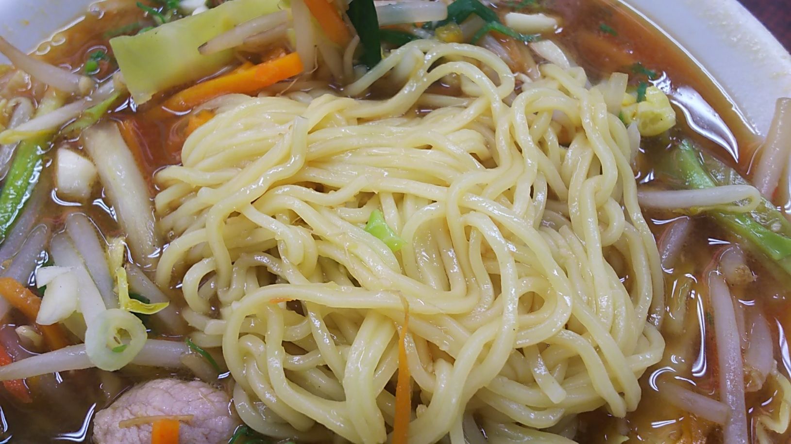 一口食べようと麺をすくうと、どっさりとダマ麺が出てきました。