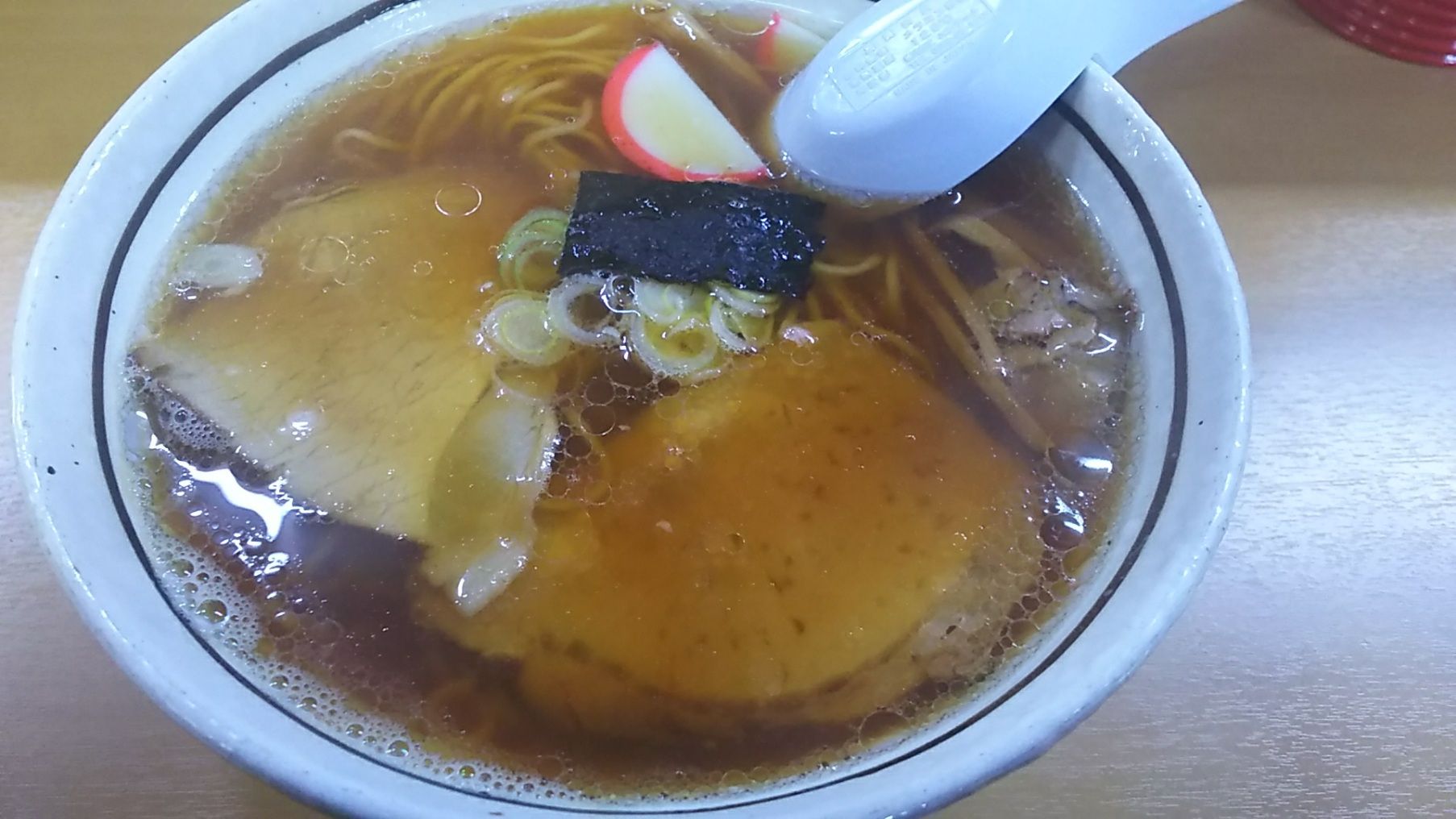 先に帰るという奥さんと別れて、一人ぼっちで、中華そばをすすりました。