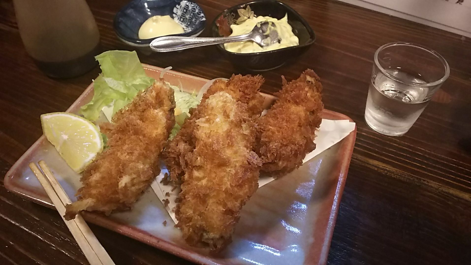 カキフライにしてもらいました。殻付きの牡蠣から、身を取り出してのカキフライ。