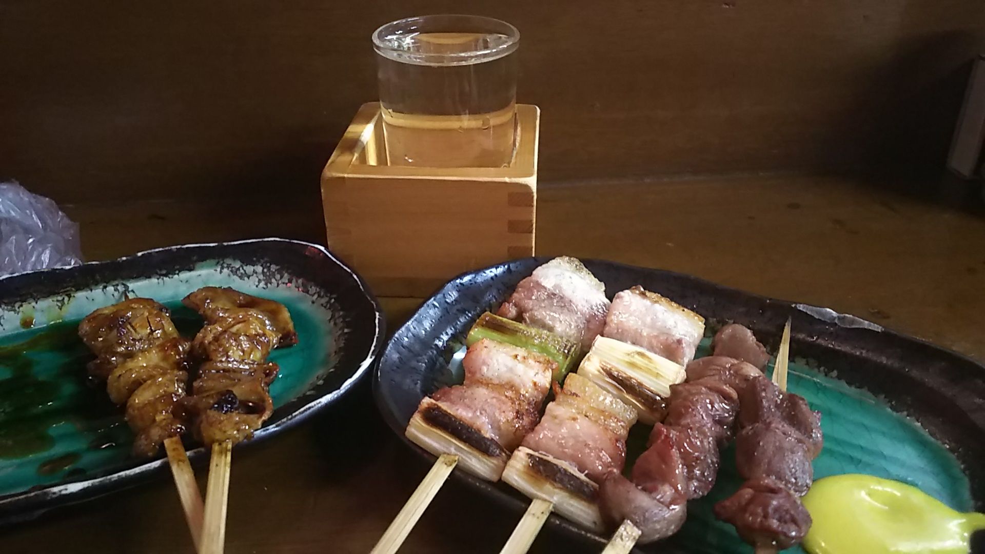 鳥皮(タレ)、ネギマ、砂肝。