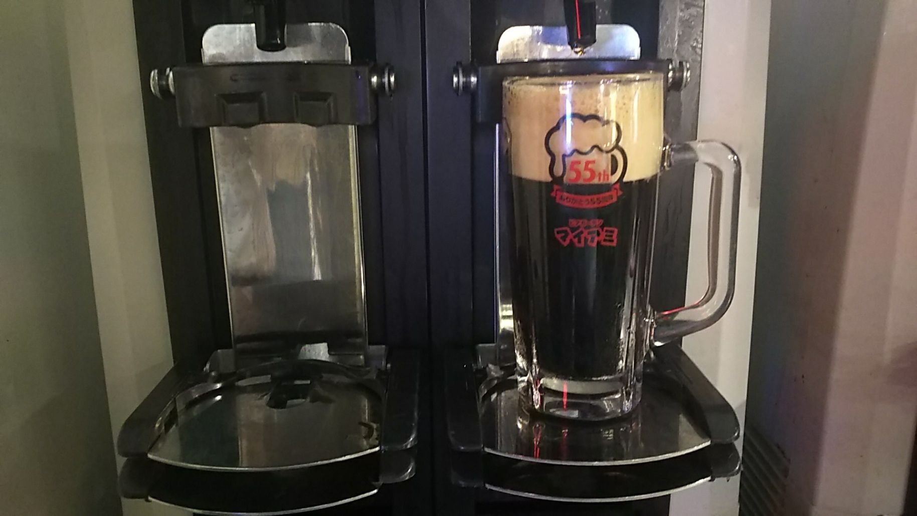 こういう自動サーバーでビールが注がれます。最初は、ジョッキを傾けて8分目ぐらいまで、勢いよく注ぎますって、機械ですが。