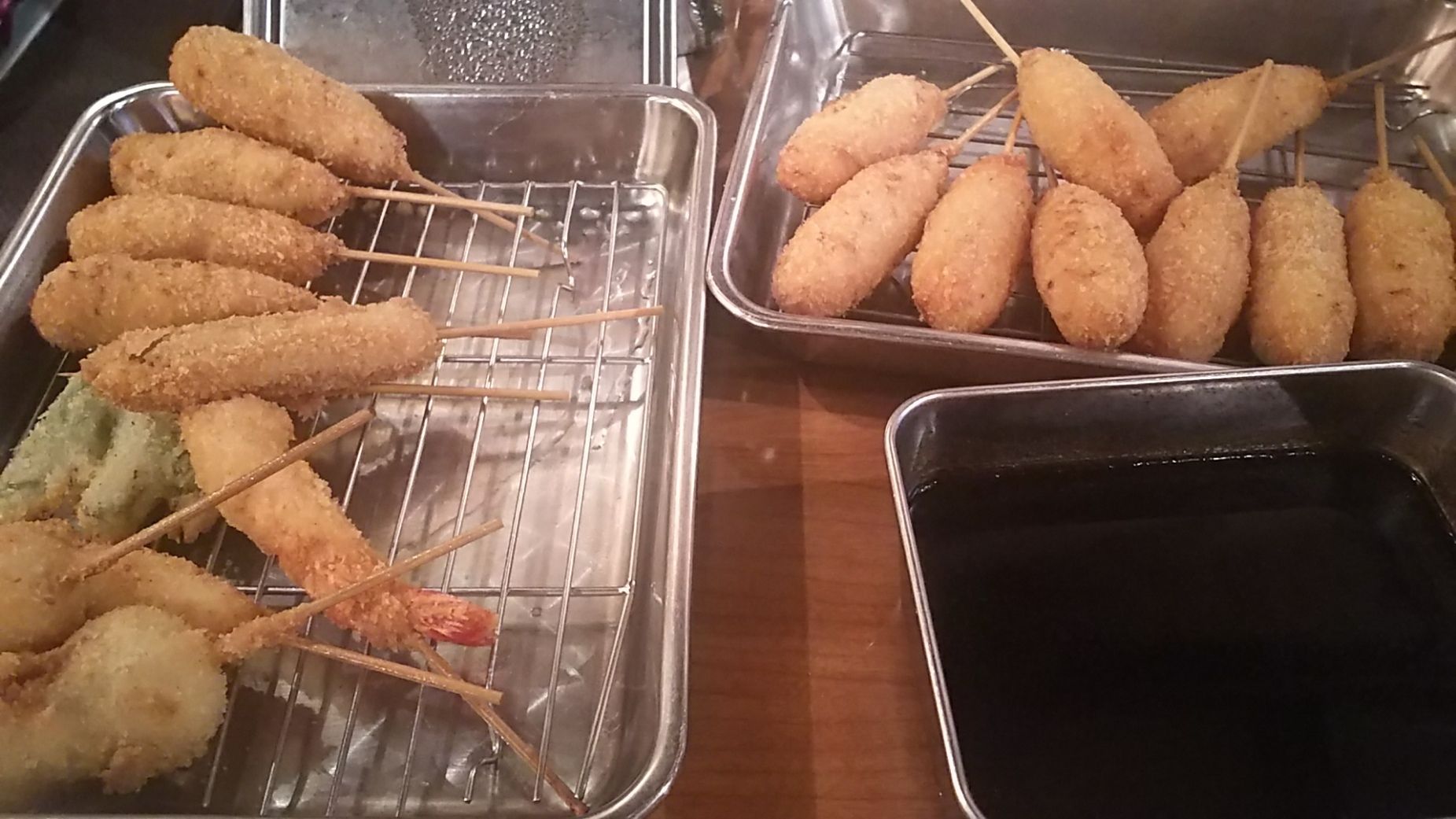 細かいパン粉でサクサクに揚げてある串カツ群。