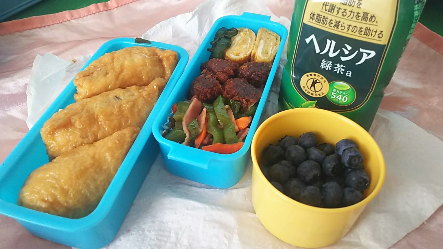 稲荷寿司は、昨夜の寿司飯の残りです。ブルーベリーが酸っぱかった。