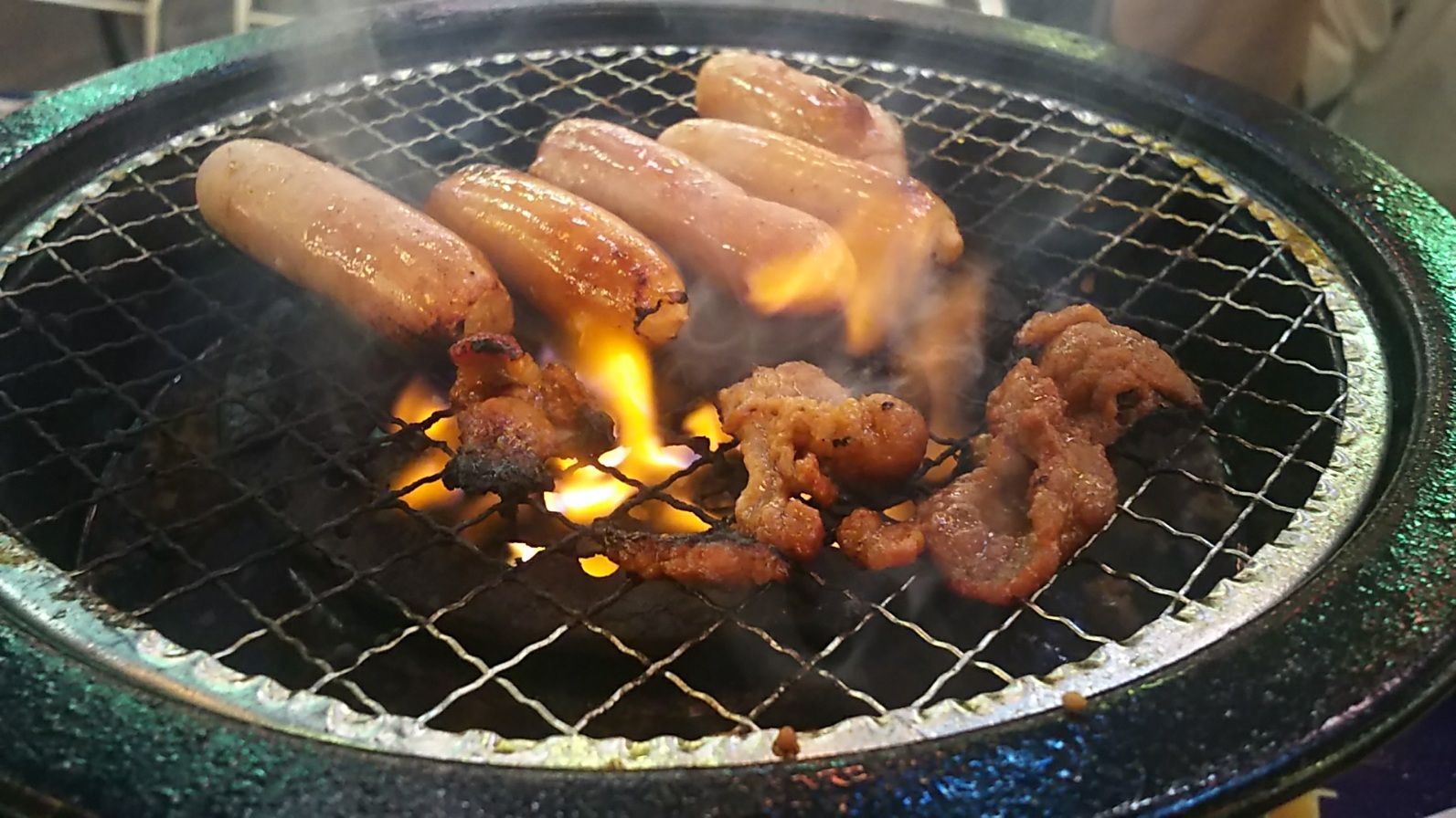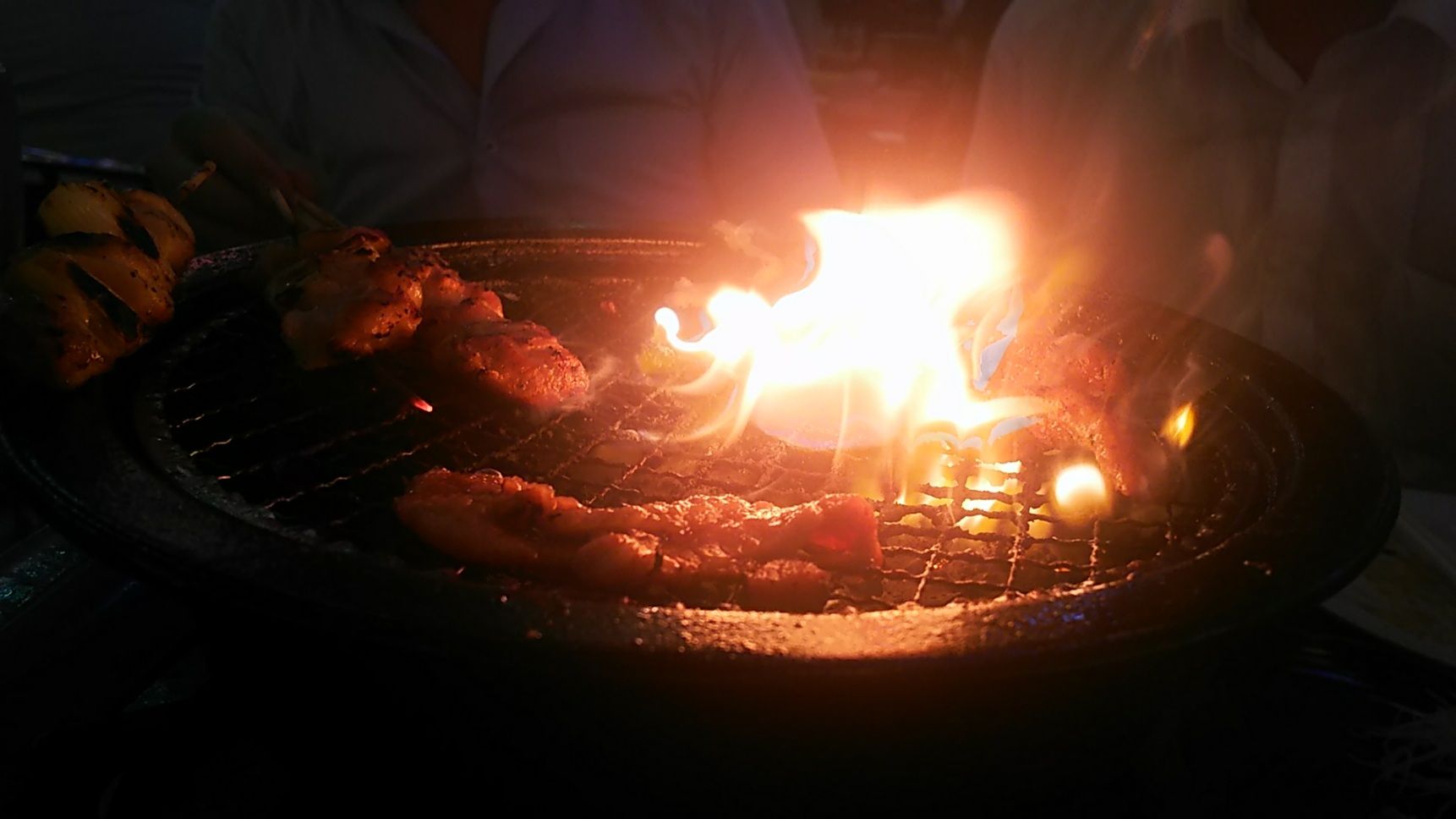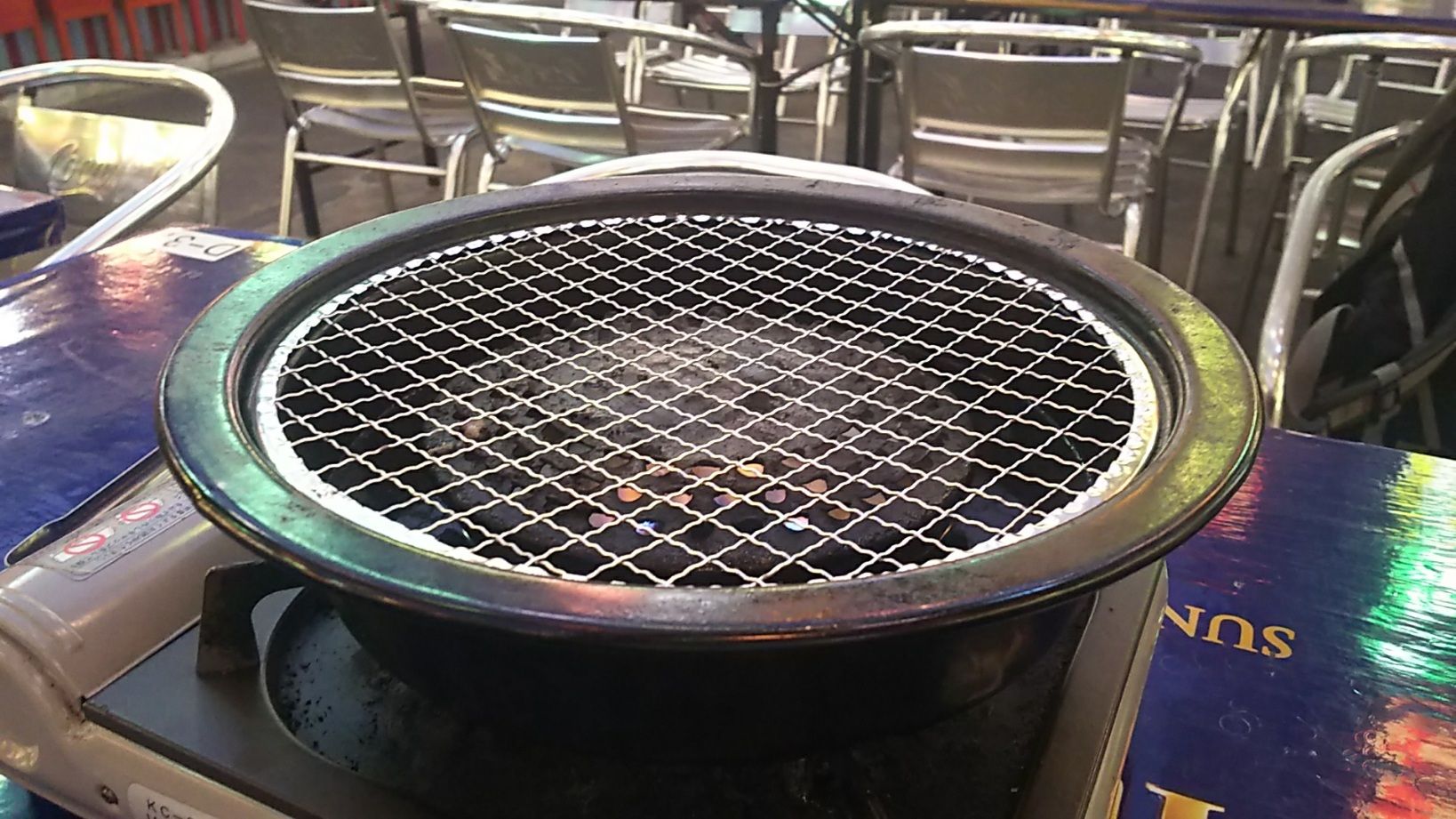 BBQは、ガスコンロ直焼き‥