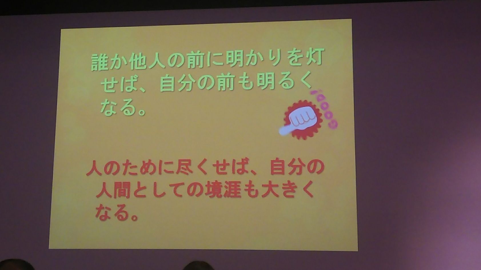 児童虐待防止に携わっている方なのですが、児童虐待を他人事ではなく「ジブンゴト」としてとらえて、みんなが行動すれば児童虐待で命を落とす子どもは減るでしょう、というお話でした。
