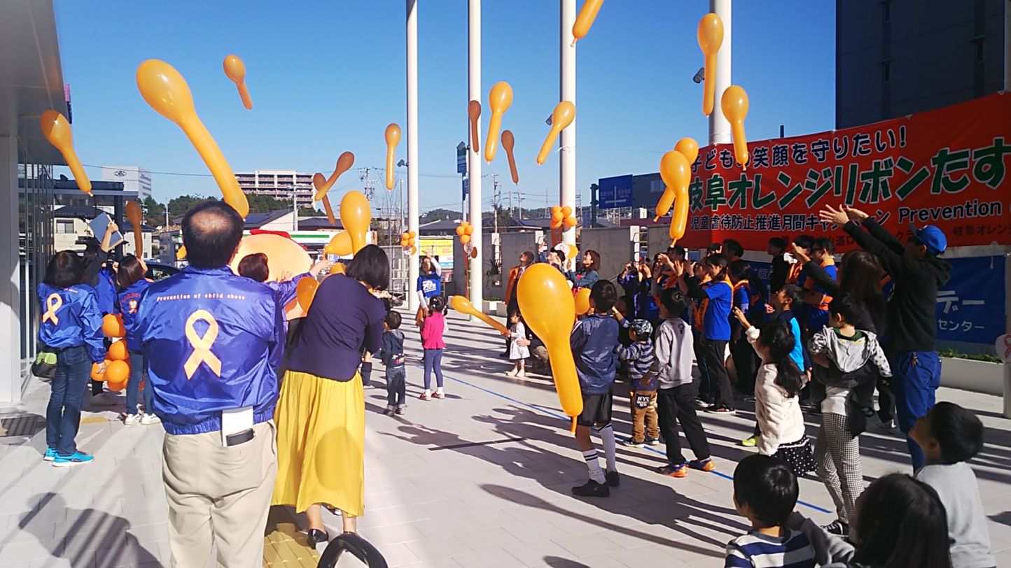 出発にあわせて、オレンジのジェット風船を飛ばしました。