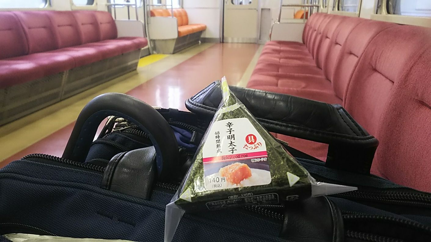 ガラガラの電車、この車両の乗客は、おいらを含めて3人。