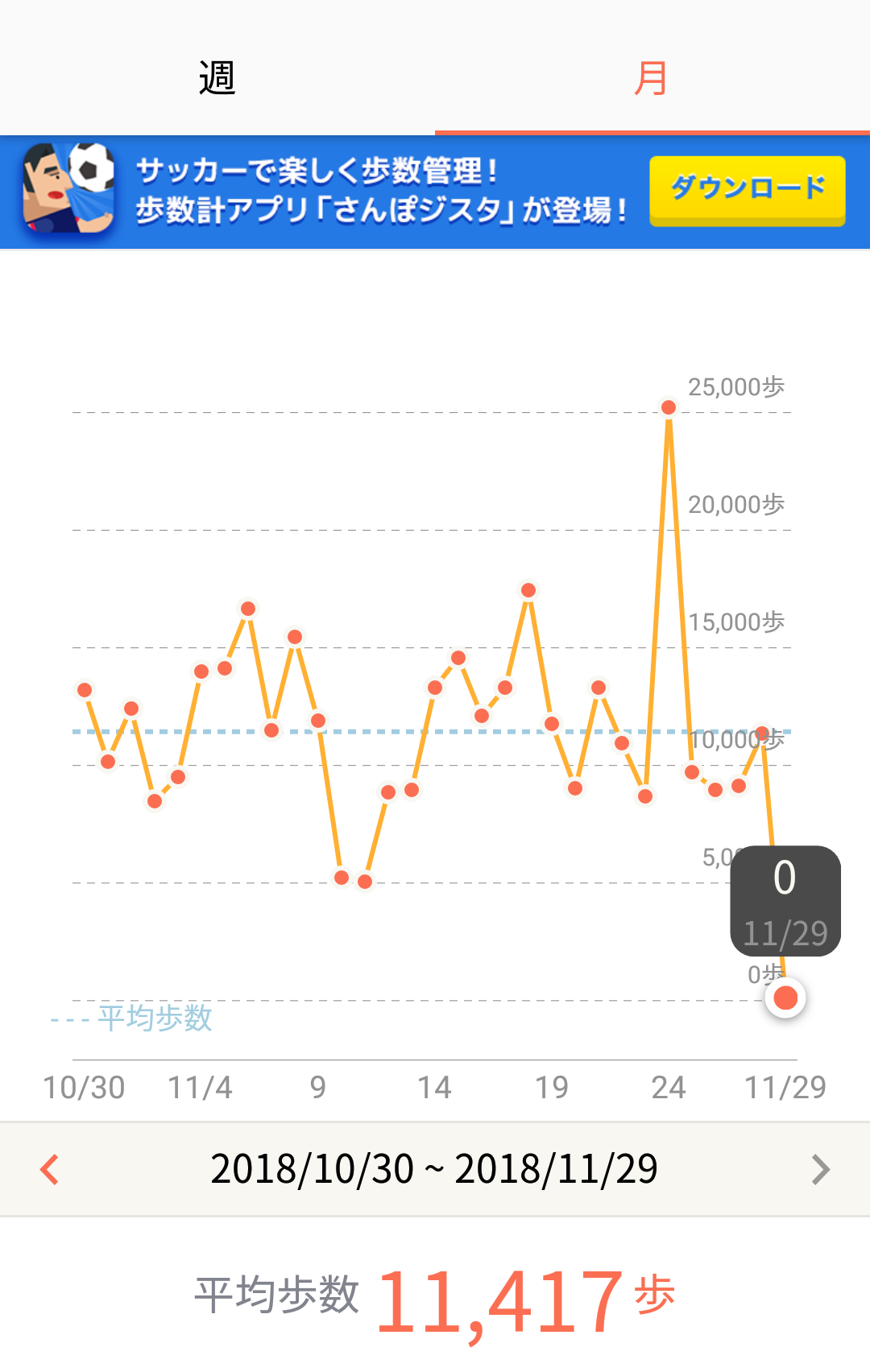 さて、昨日は、体重の推移を出しましたので、今日は平均歩数を出します。