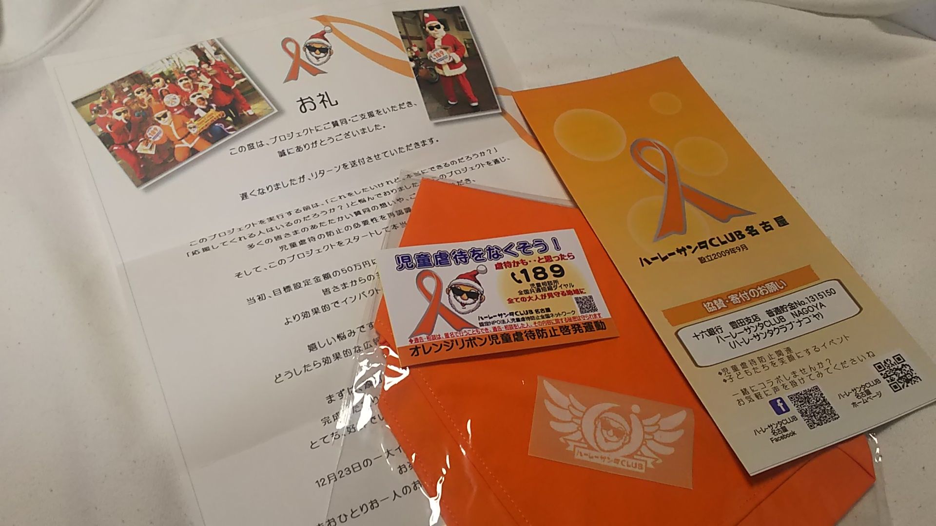 児童虐待防止活動に取り組んでいる​ ハーレーサンタCLUB NAGOYA ​さんからです。
