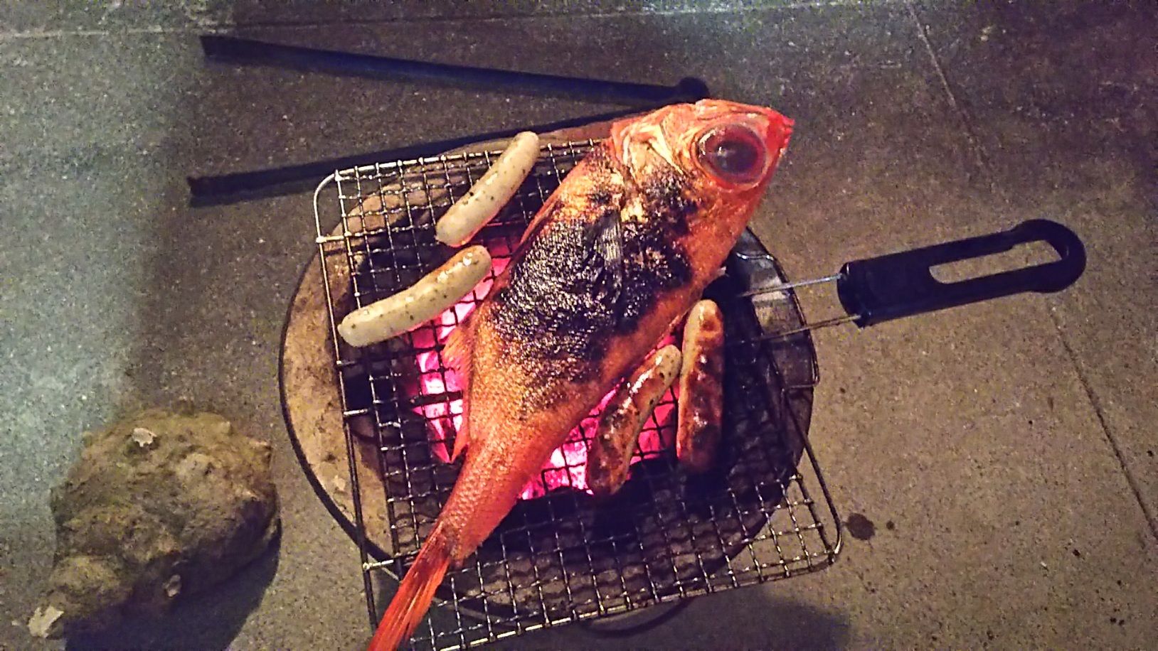 金目鯛は、大きすぎて、半分に切らないと焼けませんでした。