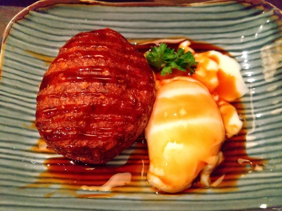 大きなつくねです。温泉玉子を溶いて、黄味につけて食べたら絶品でした。