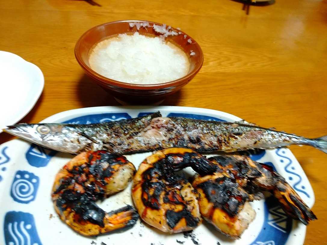 長女が、七輪に炭をおこして焼いてくれました。冷凍ものではなく、新サンマです。炭で焼くと、まわりがパリパリですが、身はしっとり。
