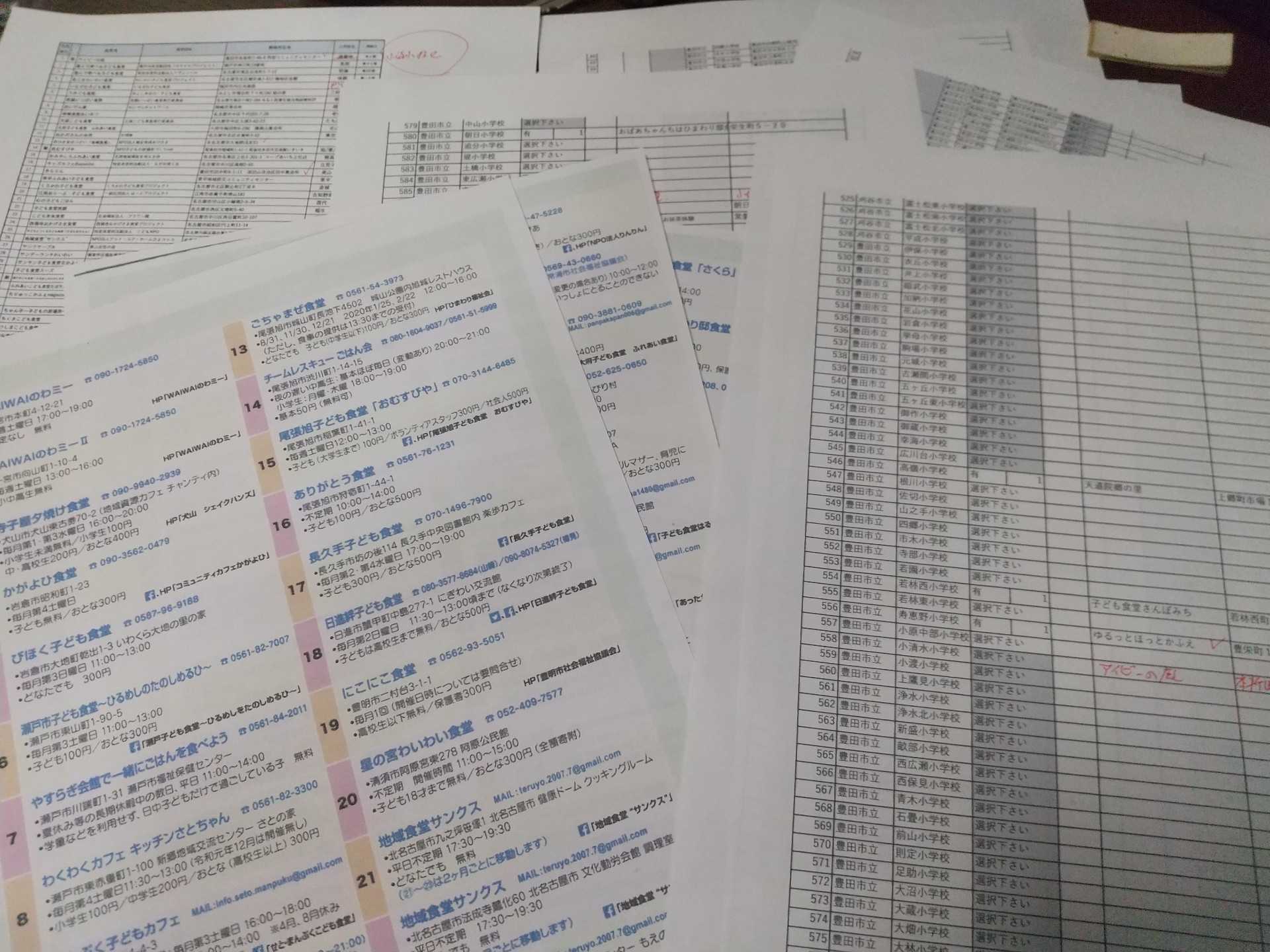 子ども食堂の開催学区のデータ入力。各小学校区に1つの子ども食堂があるといいな。