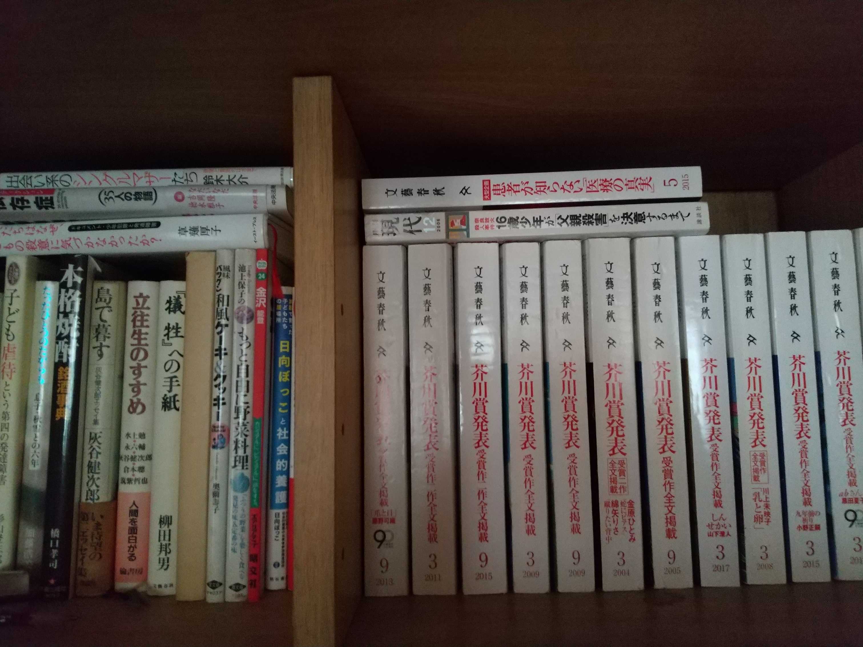 芥川賞の受賞作が掲載される文芸春秋の3月号と9月号、毎号買っていましたが、半分は処分。