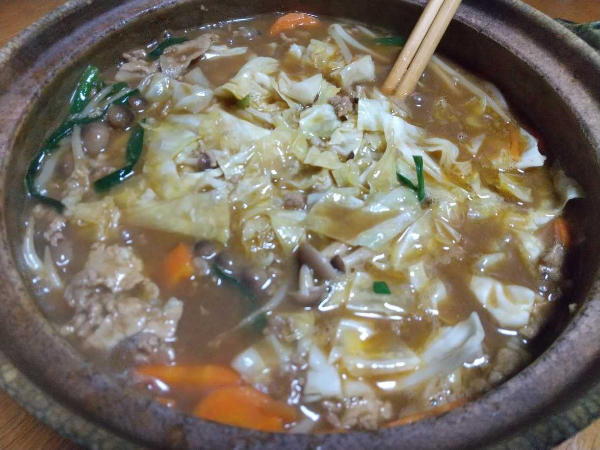この鍋の残り汁は、明日のお昼に、カレーうどんになりますね。