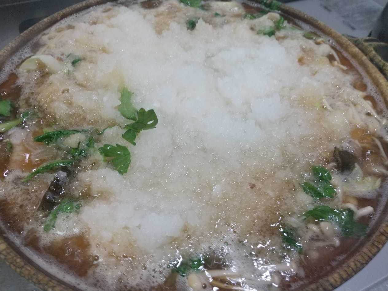 晩ご飯は、おやじの鍋料理のリクエスト。この間買った鬼おろしを使っての鍋にしました。