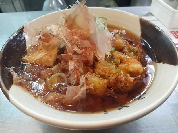 かき揚げも揚げたてのアツアツ。この誘惑に打ち克つのは、難しいなぁ。