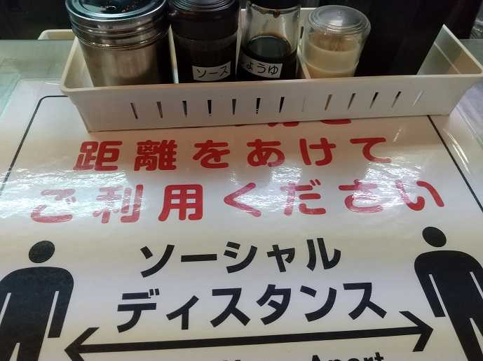 駅のホームの立ち食い麺屋さんですが、ソーシャルディスタンスに気をつけないといけません。