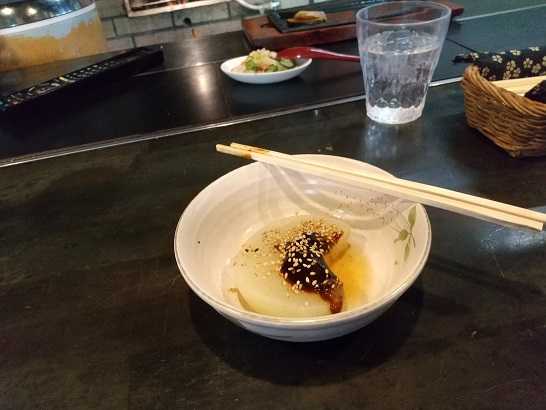 初めて入ったお店でしたが、おばちゃんが「これ食べやぁ」と、なぜかふろふき大根をサービスでつけてくれました。