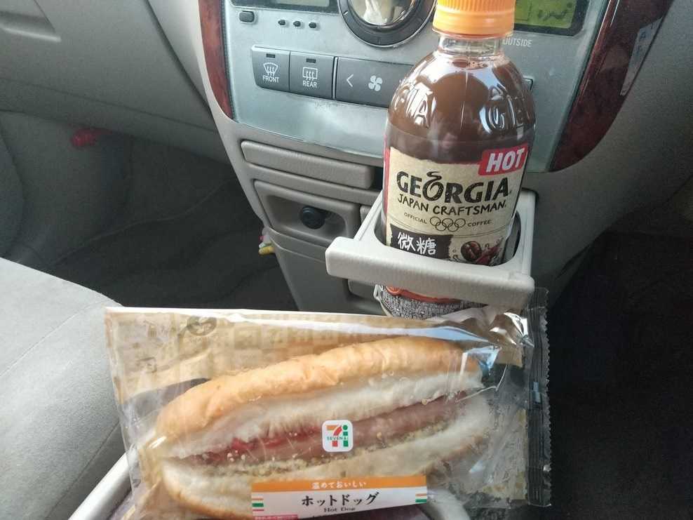 セブンイレブンで買ったホットドッグとコーヒー(微糖)。