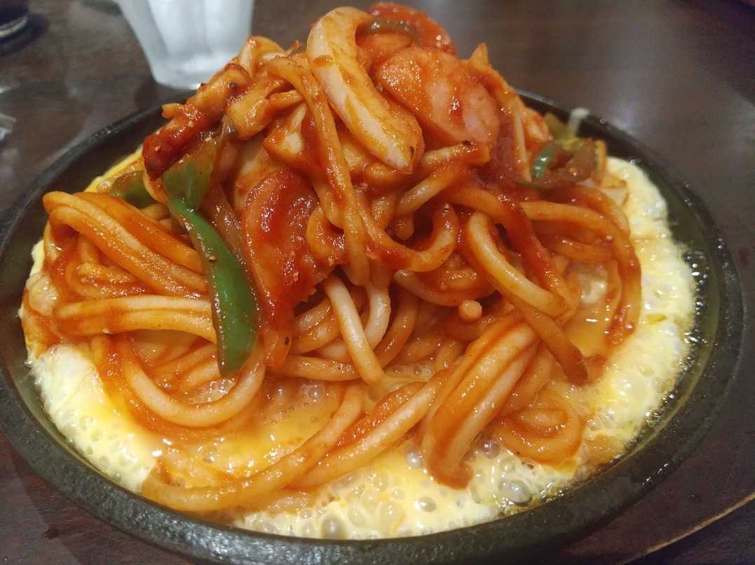 メニューで見たら、大盛りのように見えて、実際に器からこぼれそうに大盛りなのですが、鉄板はやや小さめサイズですから、量はそれほどありません。