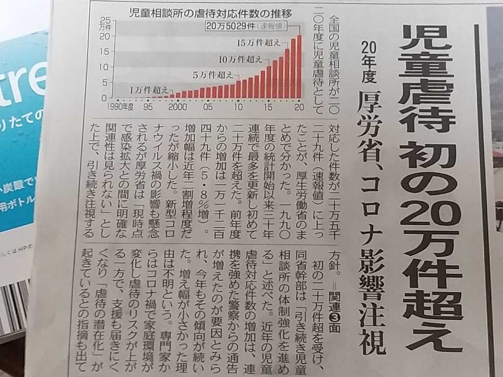 この日の夕刊です。コロナで外出を控える中、家庭内で親子のストレスが溜まっているのか、国も注視しているようです。