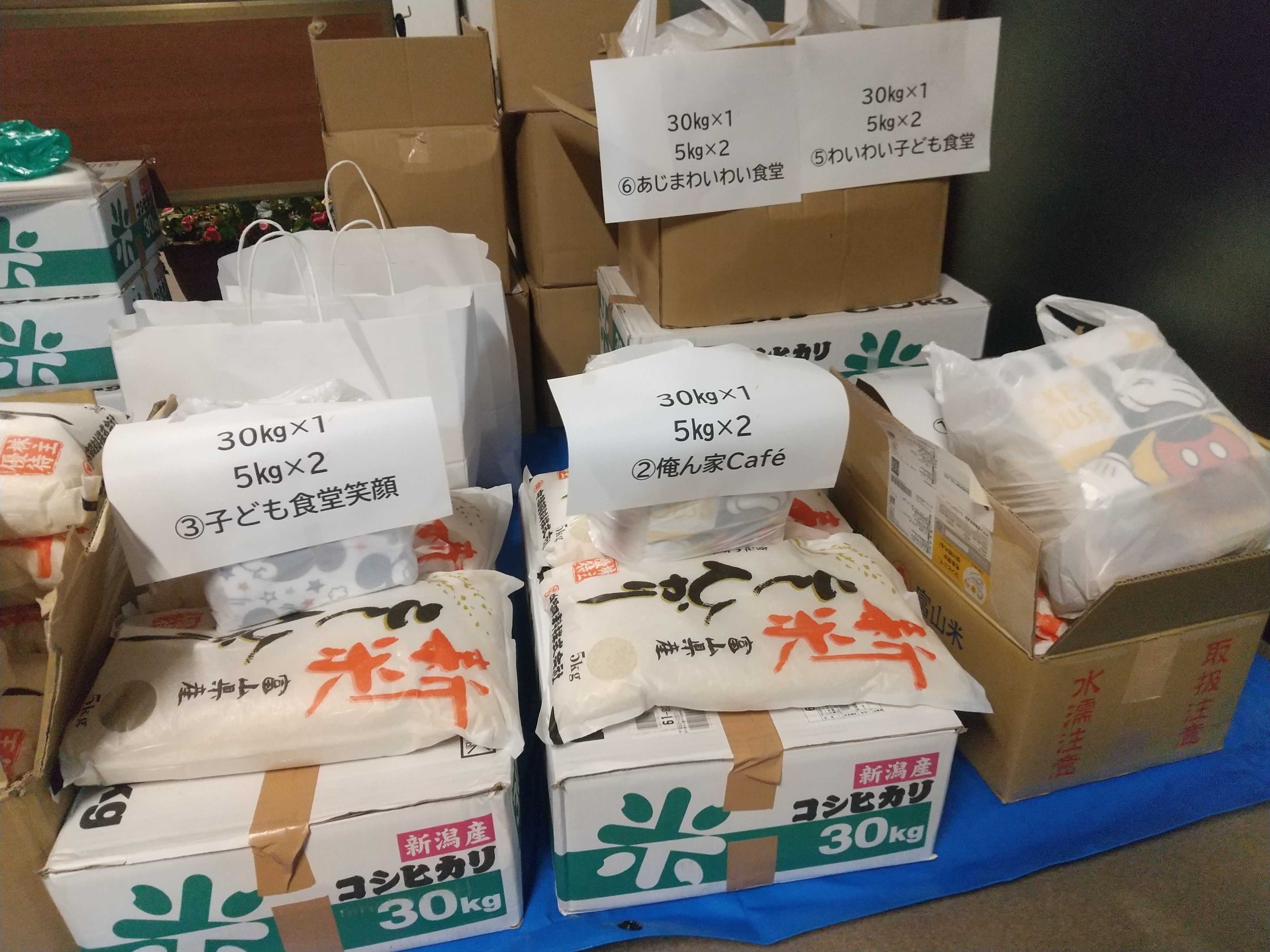 さて、この日は、仕事が終わってから、子ども食堂へのお米などのご寄付の配分作業に出向きました。
