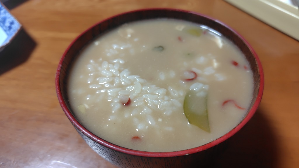 お椀に入っているのは、昨夜食べた天下一品の鍋汁の残りです。