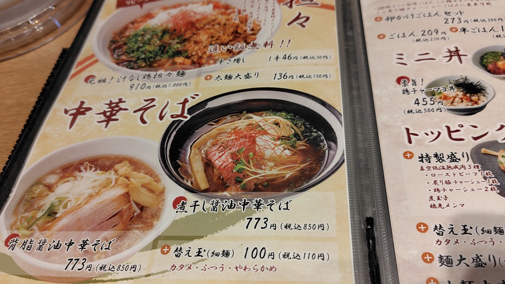税込み850円です。ちなみに鶏白湯系は、税込み950円からのようでした。