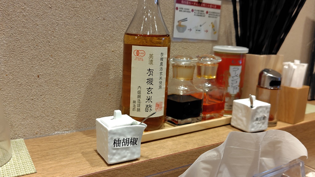調味料入れなどは、きれいに手入れされています。美味しいお店は、調味料入れを見ろ!と、諸兄が言われていますから、期待できるお店ですね。