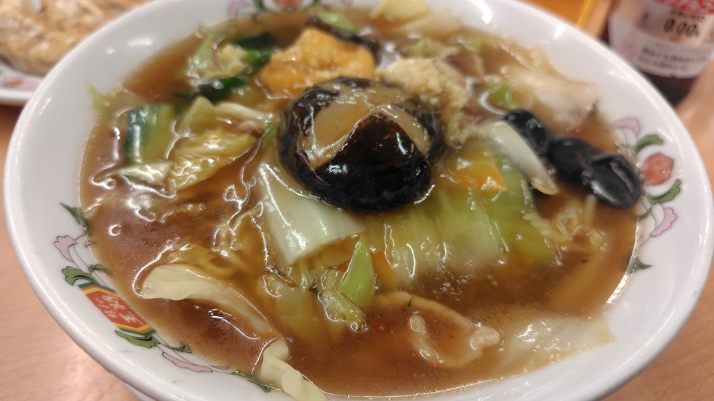ということでノンアルです。注文は、一択、12月・1月の期間限定メニュー、五目あんかけラーメン825円(税込み)です。