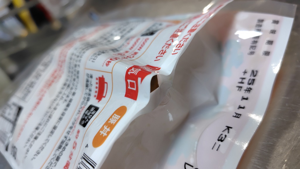 レンチンすると、袋の裏側(レンチンする時に、裏向けで袋を入れなければなりません。)から袋の中に溜まった蒸気が噴き出す蒸気口があります。