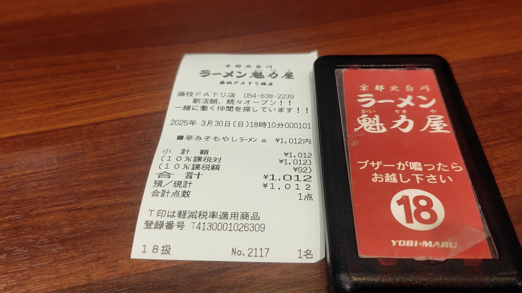夕食は、久しぶりに藤枝PA(下り)の魁力屋に突っ込みました。