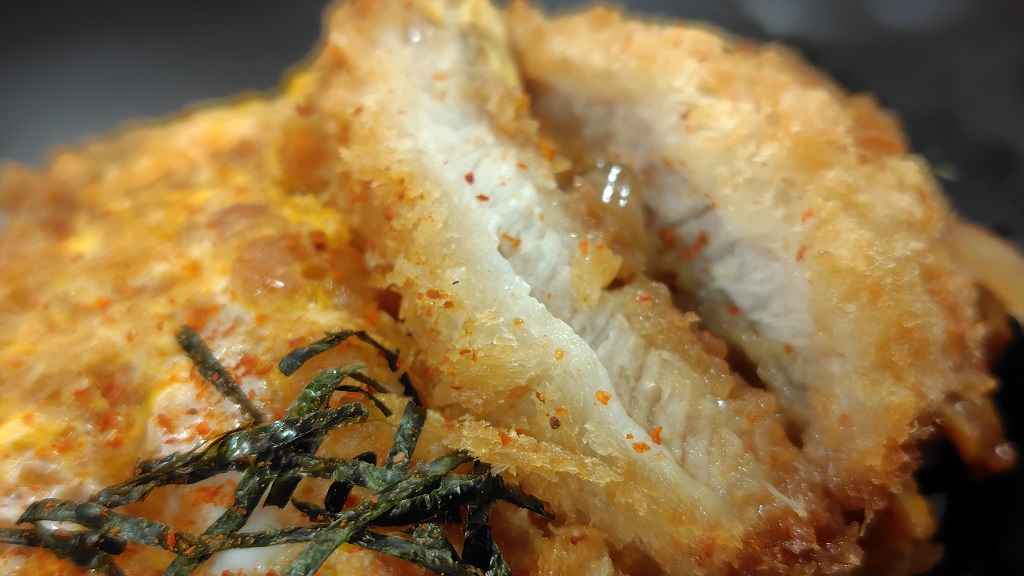 玉子は、フチが焦げ付いているぐらいです。カツ丼の玉子が焦げ付くというのも珍しいのですが、それもタレが少ないせいだと思います。