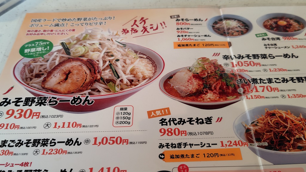 お値段的には、定番の野菜みそラーメンがいいかな、と思いました。ニンニクをたっぷり入れてね。