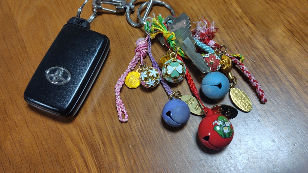 毎月の鈴をキーホルダーに加えています。