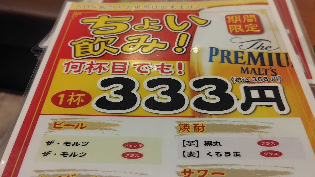 生ビールが366円(税込み)というのは、ありがたいです。