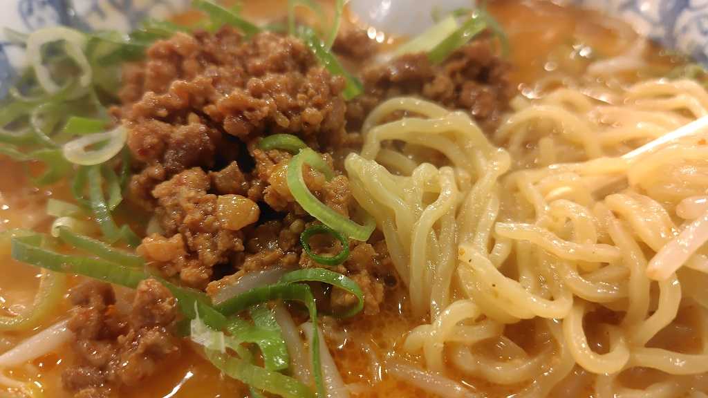 麺は、多加水の透明度が高い中太縮れ麺です。あまり担々麺に合っているようには感じません。