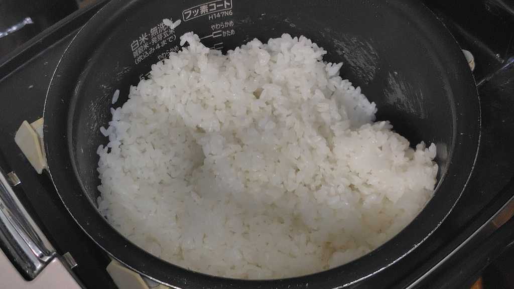 古米(もしくは古古米?)なので、乾燥がすすんでいるのでしょうか、新米の水量では、少し足りないかもしれません。