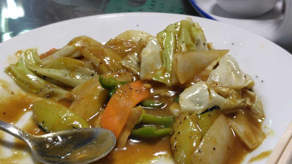新製品のカレー味の豚肉とキャベツの炒め物です。