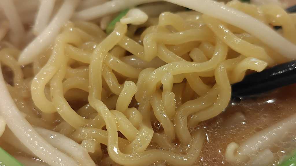 麺は、やや太めの中太縮れ麺。味噌スープに合う麺ですね。
