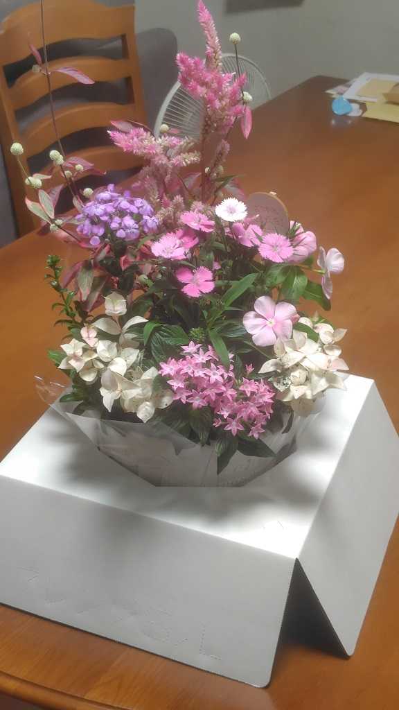 長女から、奥さんの退職をねぎらうお花です。