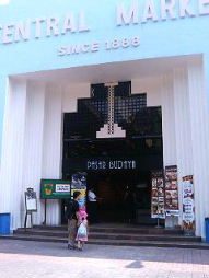 今日は、「るるぶ」を見て、気になっていた、セントラル・マーケットに。観光スポットで、お土産物屋がたくさん入っている建物とか。ピューターやバティックの店、アクセサリーなどの店をウィンドウショッピングした。その後、横断歩道を渡ってすぐの、チャイナタウンを散歩。指圧マッサージの呼び込みや、男性はアヤシイビデオの売り込みで、声をかけられたり、賑やかな雰囲気。(↑さすがに、家族連れのダンナくんには、ビデオ販売の声をかけにくかったらしく、ほとんどなかった。)フルーツの屋台がたくさんあった。私には、まだ相場がわからないけど、スーパーより安いらしい。チャイナタウンをひとまわりして、ランチはセントラル・マーケット2階にあるフードコートで。余談ながら、ここのトイレは有料。RM0.3(約9円)でも、水びたしで、子供にはチョット‥という感じだった。