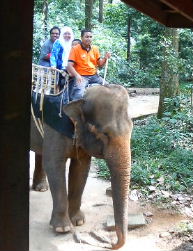 今日は、マラッカ動物園へお出かけ。これまた、マラッカまでの道路が渋滞するとか、という情報もあって、8時半に出発。スタートダッシュが功を奏したのか、渋滞ナシで2時間で到着。大人RM7(210円)、子供RM4(120円)の入場チケットを買い、園内へ。ゲート入り口で、チケットもぎのおじさんが「どこから来たの?」と声をかけてきて、その返事に「Japan」とダンナくん。その場では言わなかったけど、後で、「‥KLでしょ」と、ツッコミを入れた。わざわざ日本から、マラッカの動物園に来る人も少ないでしょうに。園内は、もちろん日本人家族は、(多分)うちだけ。あー、以前、ハリラヤ中にサンウェイラグーンのプールに行った時も、こんな雰囲気だったっけ。でもまぁ、動物園自体は、動物がすぐそばで寝てたり、(大コウモリが)頭上50cmくらいの所に、ぶら下がっていたりして、面白かった。ちなみにポニーや象にも格安で乗れる。距離は短いけれど、象1周RM4(120円)←母・子2人で。持参したお弁当を食べて、1時くらいに園を出た。その頃には、すでに、駐車場は満車。園を出たら、反対車線は大渋滞。やっぱり渋滞するらしい。