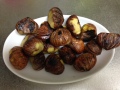 冷凍した栗の渋皮を取るのには、「渋皮に少し切り目を入れ、多めの油で色が変わるまで炒る」らしい。切れ目を入れるのを忘れたけど、包丁を使って、パリッと剥がすことができた。