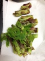 会社の人から山菜を頂いたので、今日は、山菜の天ぷら。えー…っと、食べたことはあるんだけど、タラの芽?小麦粉を薄めに溶いて、低音で5分くらい。パリッとして、ほろ苦くて、おいしかった。